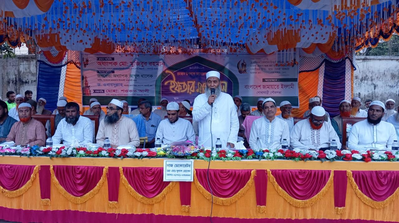 গোদাগাড়ী পৌরসভার ভারপ্রাপ্ত আমীর মোঃ শওকত আলী-এর সভাপতিত্বে অনুষ্ঠিত ইফতার মাহফিলে বিশেষ অতিথি হিসেবে উপস্থিত ছিলেন অধ্যাপক আব্দুল খালেক, আমীর, বাংলাদেশ জামায়াতে ইসলামী রাজশাহী জেলা। এছাড়াও উপস্থিত ছিলেন গোদাগাড়ী পৌরসভার জামায়াত মনোনীত মেয়র প্রার্থী ও জেলা জামায়াতের কর্মপরিষদ সদস্য ড. মোঃ ওবায়দুল্লাহসহ পৌরসভা ও উপজেলা পর্যায়ের বিভিন্ন পর্যায়ের নেতৃবৃন্দ।